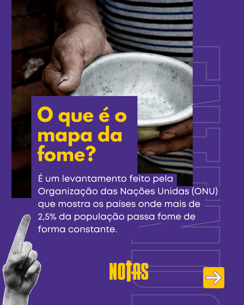 O Mapa da Fome indica os países onde mais de 2,5% da população sofre de fome crônica. Estar fora do indicador significa que menos de 2,5% dos brasileiros enfrentam insegurança alimentar grave.