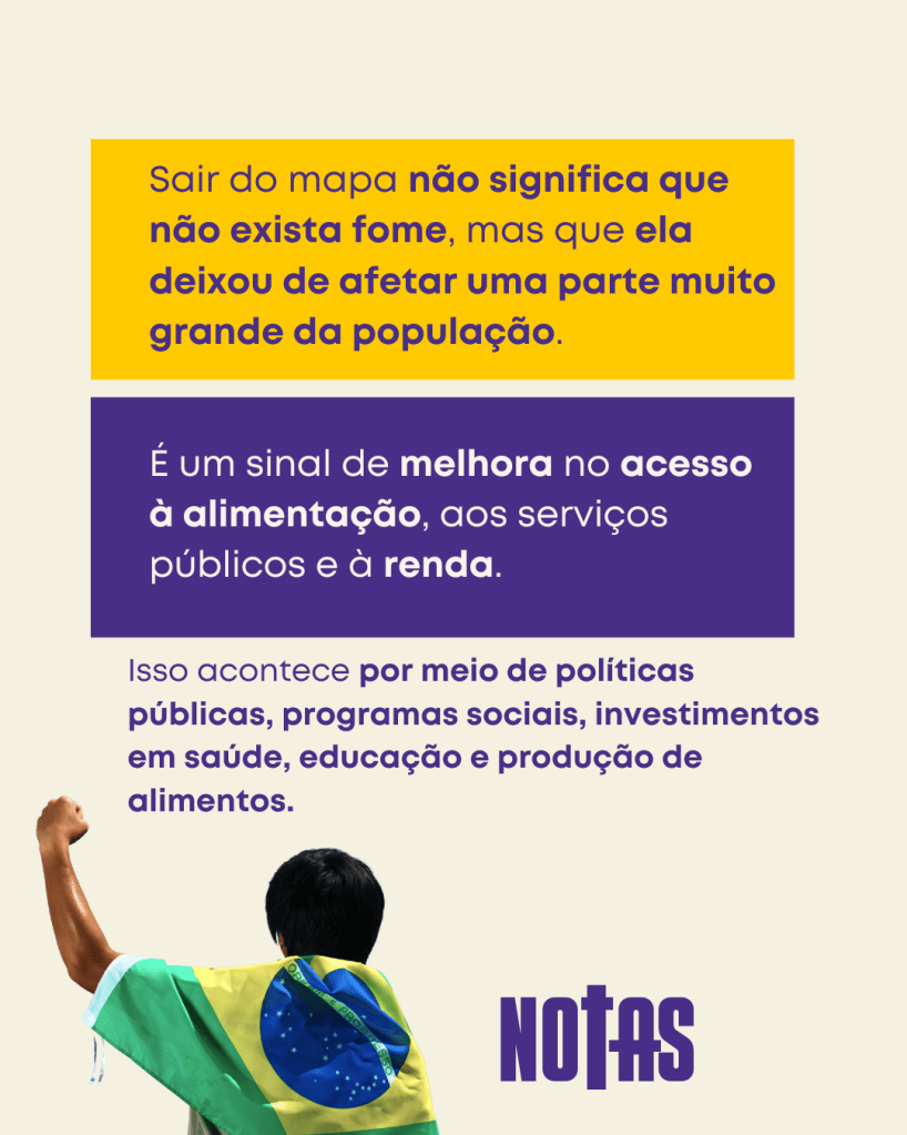 Isso não quer dizer que a fome acabou, mas que deixou de atingir uma parcela muito grande da população. É um sinal de avanço no acesso à alimentação, renda e serviços públicos, resultado de políticas sociais, investimentos em saúde, educação e produção de alimentos.
