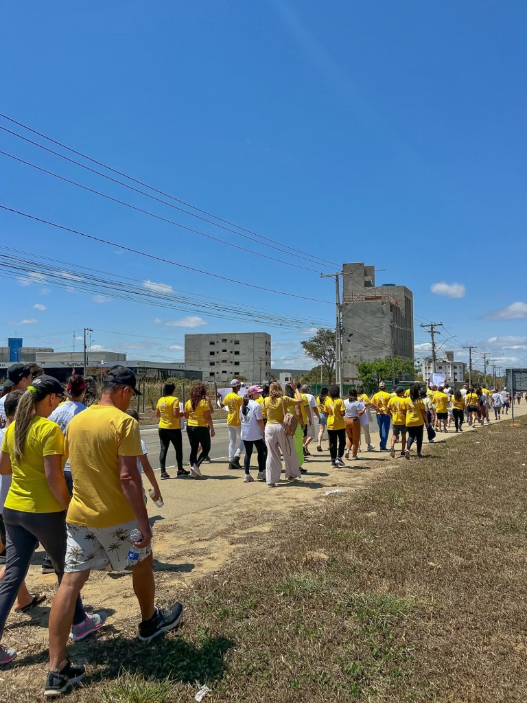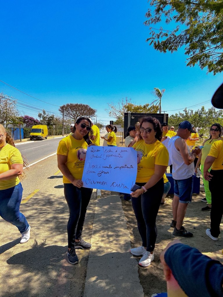 O Grupo Missão Vida realizou, no último domingo (14/09), um encontro na Avenida Olívia Flores, em Vitória da Conquista, para colocar em cena a importância do Setembro Amarelo na cidade. Vestidos de branco e amarelo, familiares, amigos e apoiadores seguiram do viaduto até a Universidade Estadual do Sudoeste da Bahia (Uesb) com cartazes e mensagens de reflexão.