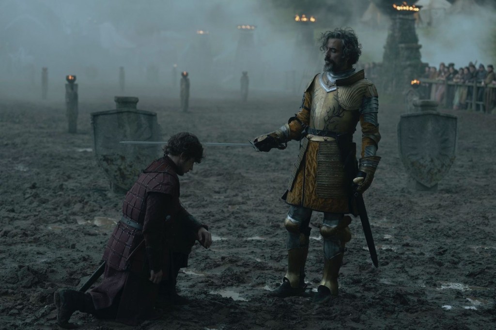 Quando Raymund Fossoway pede que seja armado cavaleiro, Duncan hesita, duvidando de seu próprio lugar naquela ordem. Lyonel, percebendo a urgência do momento, toma a frente, concede o título em um ritual teatral e grandioso, tornando o momento ainda mais elegante.